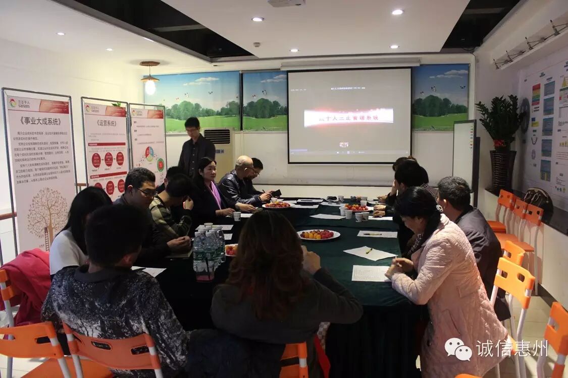 2015年12月28日,惠州市企业诚信建设促进会理事会领导班子胡美香等15人前往深圳市三正大成企业管理顾问有限公司惠州分公司参加培训交流讲座。