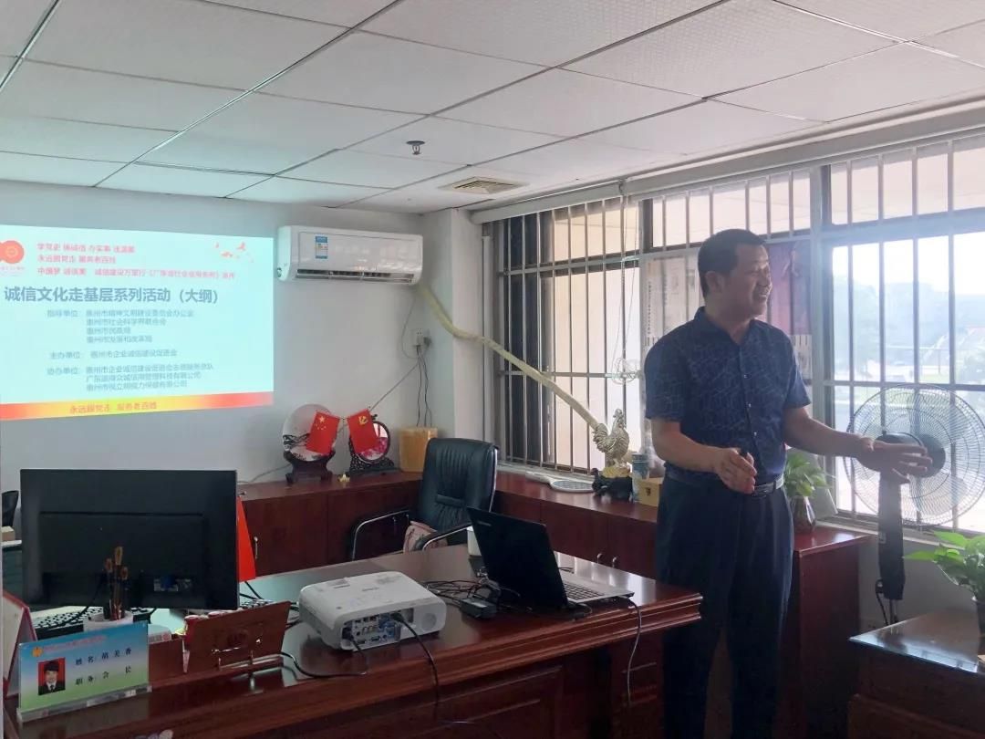 汇报会上,我会特聘专家何江波就《诚信文化走基层系列活动大纲》进行了详细的讲解。诚信文化走基层系列活动的目标是培育诚信公民、诚信企业家、诚信企业和诚信产品。宣讲主要包括四大部分内容,一是学习党史,领悟诚信;二是建设有中国特色的社会主义诚信文化;三是重视青少年的身心健康;四是宣传《广东省社会信用条例》。